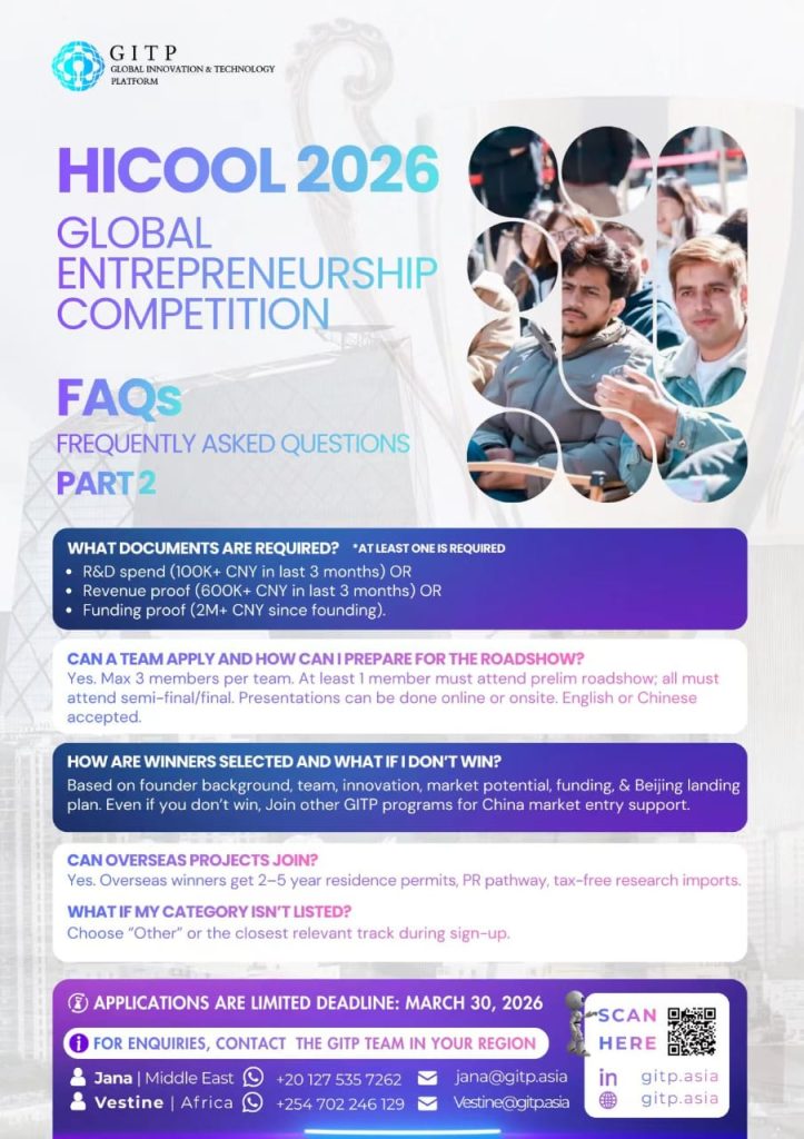 HICOOL 2026 Global Entrepreneurship Competition is officially open, calling global technology founders, innovators, researchers, and high-growth startups to expand into Beijing, China, one of the worldโs most influential innovation and capital hubs.
